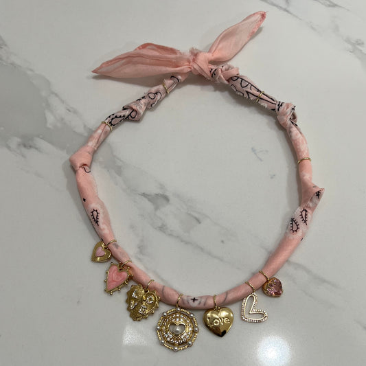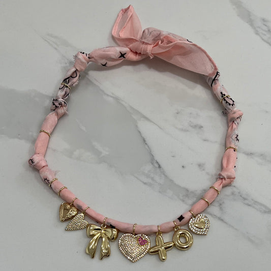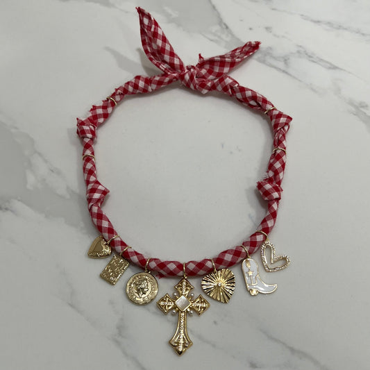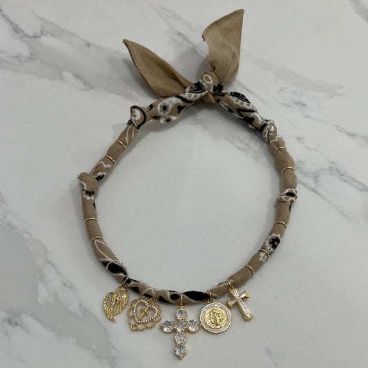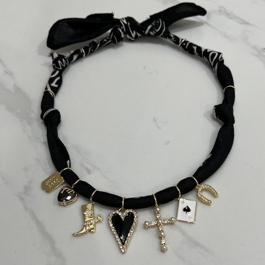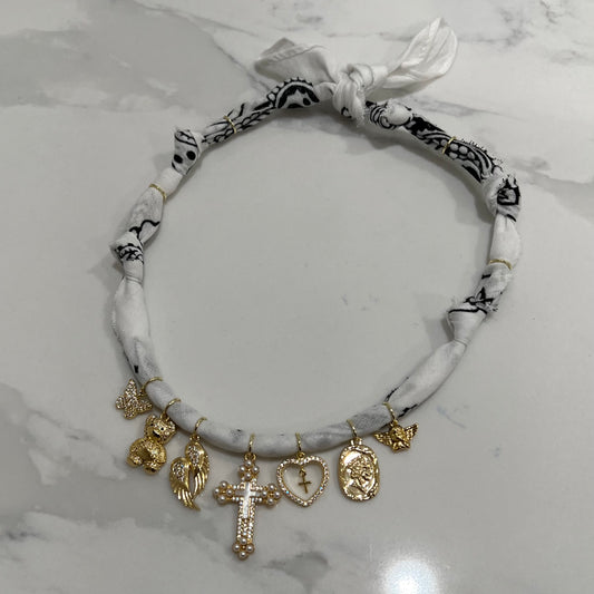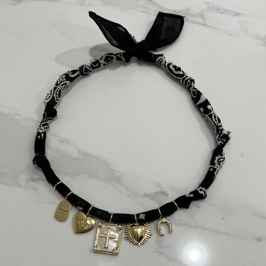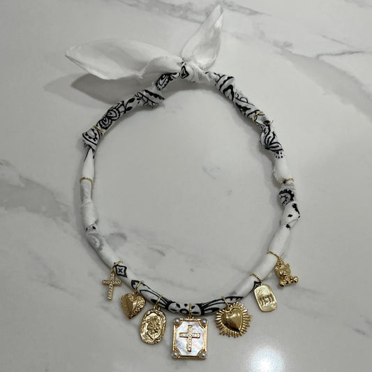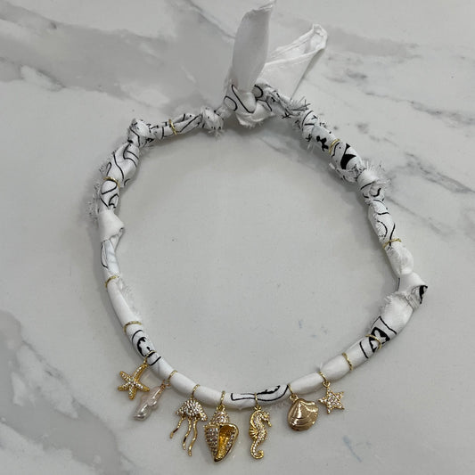 Coastal Polka Dot Bandana Necklace Navy Blue